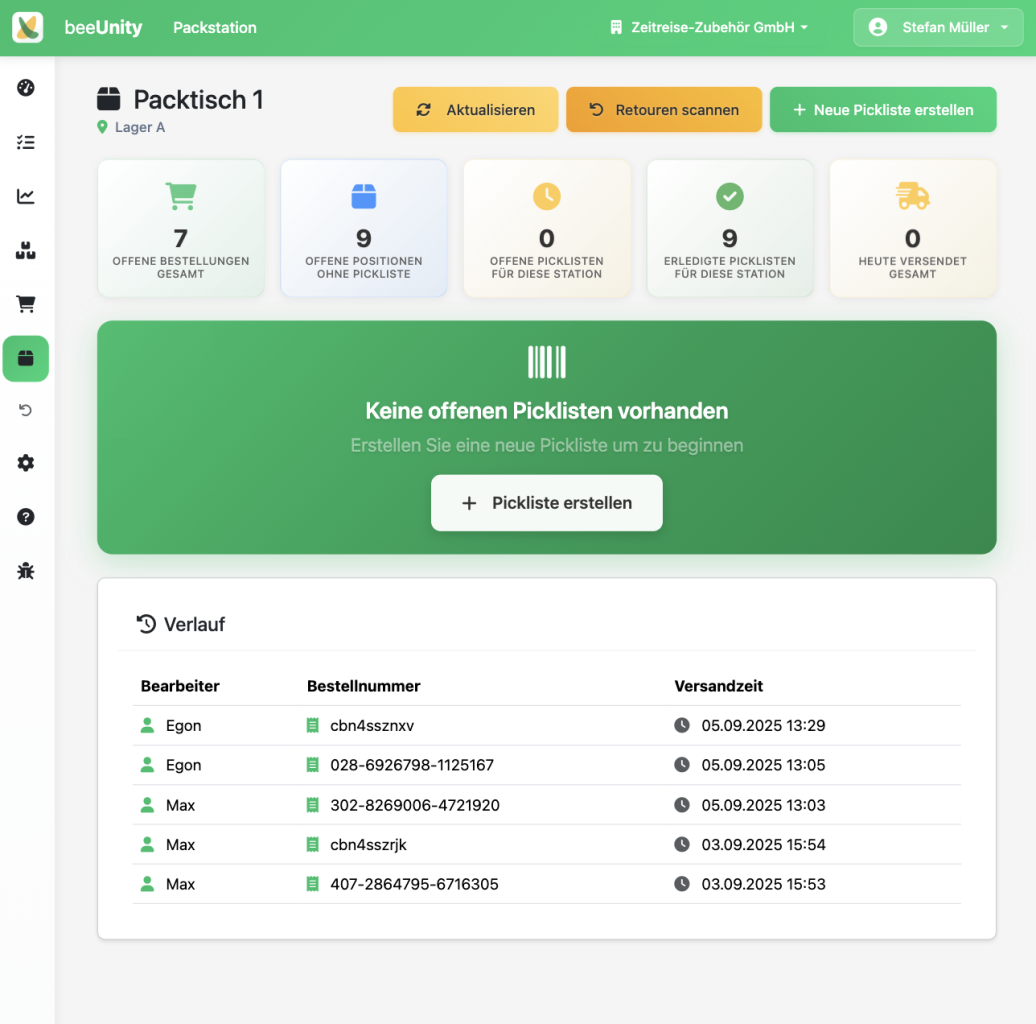 - Scanner-basierte Packstationen → Eine oder mehrere Stationen mit Barcode-Scanner